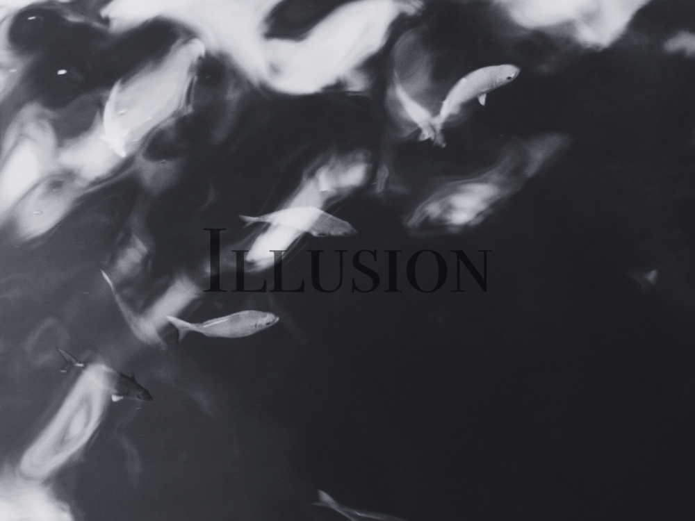 사실을 실제와 다르게 생각하는 착각이라는 단어와 어두운 물 속에 헤엄치는 듯한 느낌을 담아 보았습니다.